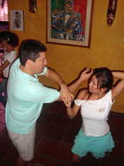 According to our philosophy, feeling and enjoying the rhythm and the music is the most important part of learning latin dancing – if you feel and enjoy the music you will always have a great time dancing and your spirit will charm the other people. The difficult moves and figures can later give some more diversion and kick to your dancing but without the feeling they are not very useful and only prevent you from getting into the rhythm.