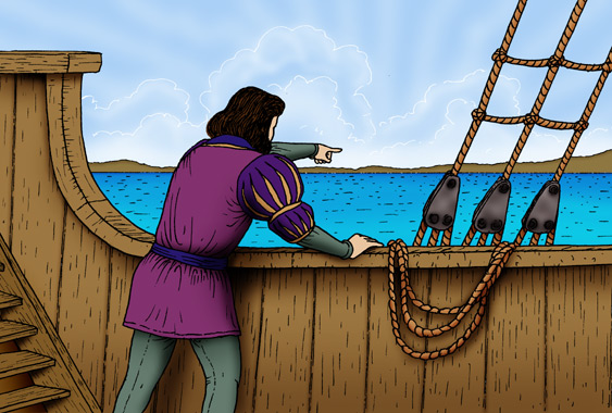El momento en que Rodrigo de Bastidas descubre la Bahía de Cartagena.